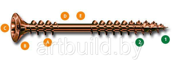 Шуруп SPAX из нержавеющей стали для фасадов, линзовая головка, цвет старого золота 4.5*60 мм.